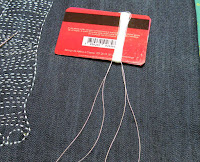 O tecido jeans com o elefante bordado em sashiko deveria ser uma almofada de chão, daquelas onde a gente se deita e se "espalha" na preguiça, mas foi transformado em painel, só para usar o lindo suporte em madeira com elefantes entalhados que veio da Guiné Bissau. O painel mede 80x70cm e mais que um bordado foi um exercício de paciência, como tecido e suporte são escuros a solução para alegrar um pouco foi enfeitar com detalhes em vermelho e pompons brancos.