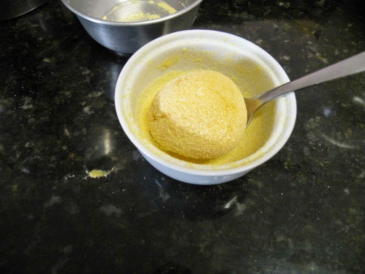A massa é pegajosa  use uma xícara cno fubá para ajudar a modelar as broas.